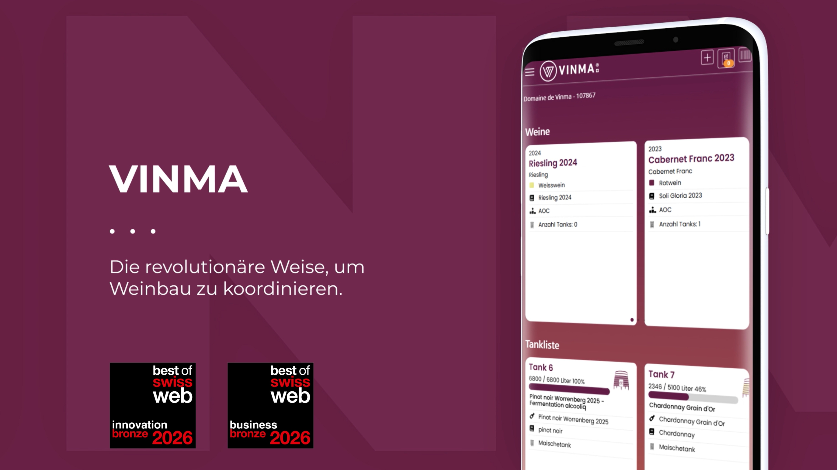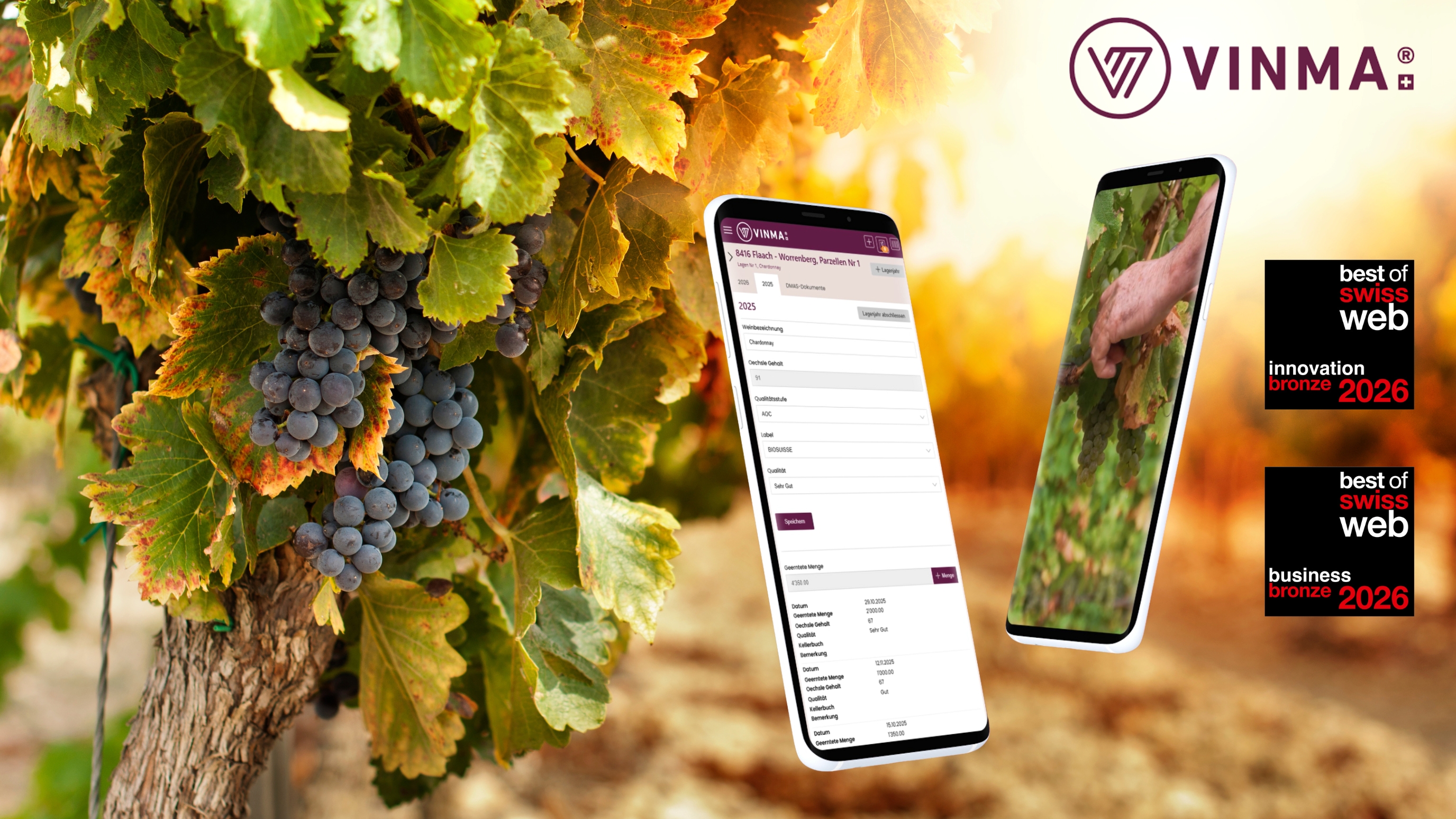 VINMA ist eine spezialisierte Branchenlösung für Weinbau und Weinvermarktung. Entwickelt von Opacc im Auftrag der Niederer Schneider AG, basiert die Anwendung auf Opacc OXAS, ERP und CRM. Sie verbindet alle relevanten Prozesse – von der Bewirtschaftung der Rebflächen über die Produktionsplanung bis hin zu Verkauf und Kundenmanagement – in einer durchgängigen digitalen Lösung.